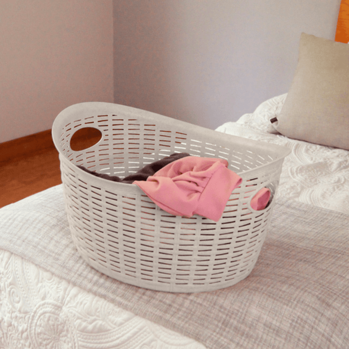 CANASTA RATTAN OVAL PLASTICOS LA ARDILLA CAPACIDAD 30 LITROS DISPONIBLE EN COLORES CHOCOLATE, AZUL Y NIEBLA