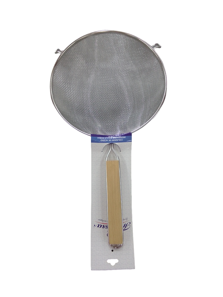 COLADOR AC INOX MALLA DOBLE MANGO MADERA TRAVESSA