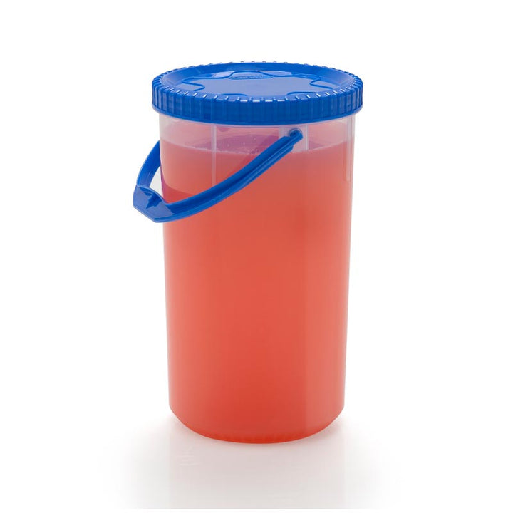 Con el juguero #4 Cubasa, transporta fácilmente tus bebidas favoritas. Su asa te permitirá llevarlo fácilmente y su taparrosca evitará derrames. Capacidad: 2.60 litros Diámetro: 13 cm Alto: 23.5 cm
