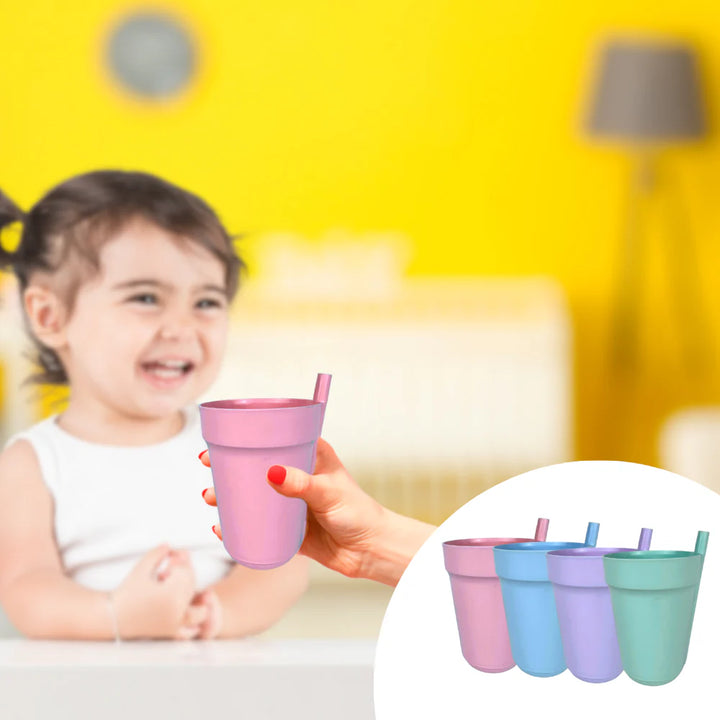 Incluye 4 vasos: 1 rosa, 1 azul, 1 lila y 1 menta
